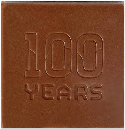 The “100-Year” milk chocolates are filled with a praliné filling (paste of sugar, hazelnuts and almonds). The milk chocolate is made from organic cacao beans coming from Java (Indonesia).